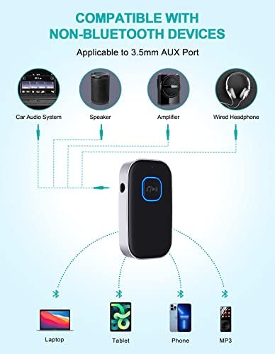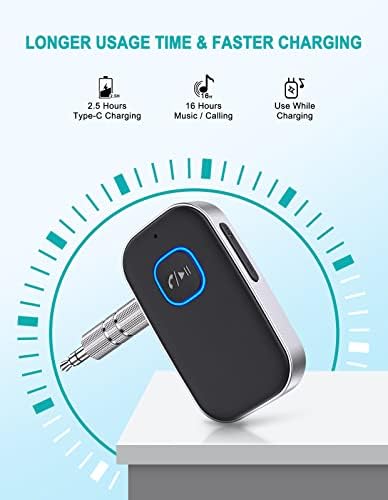 【EXCELLENT BATTERY LIFE】:The working time of this aux Bluetooth adapter is up to 16 hours when making calls or playing music. And it takes only 2.5 hours to fully charge the device by using a Type-C fast charging cable (Included in the package). In addition, this Bluetooth music adapter can be used while charging, which is very convenient. WOCBUY portable Bluetooth adapter is a good gift for old car owners without Bluetooth devices and speaker owners who lack Bluetooth function.