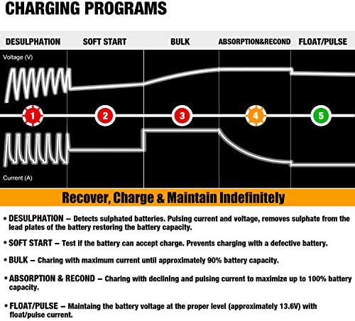 🔥【Multi-level Safety Protection & Battery Rescue】- Micro-processor Controlled program. No worry about overcharge, short circuit and reverse polarity. Spark-free technology applied. Featured Constant Pulse Current Maintenance function helps the battery avoid excessive charge and discharge. It will extend the battery life and recover batteries more effectively.