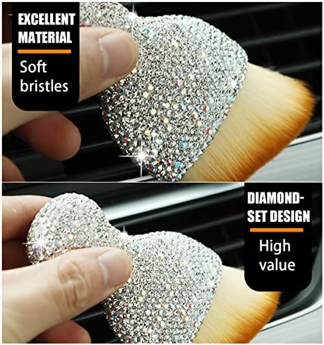 【Comfortable and Bling Handle】: The curved design of long and short bristles makes it easily go deep into the air outlet to clean hidden dust, keeping the interior of your vehicle clean and tidy. Our brush handles are also studded with sparkling crystals, a unique and beautiful style that makes them a popular brush. Handle non-slip groove design also provides a comfortable grip.